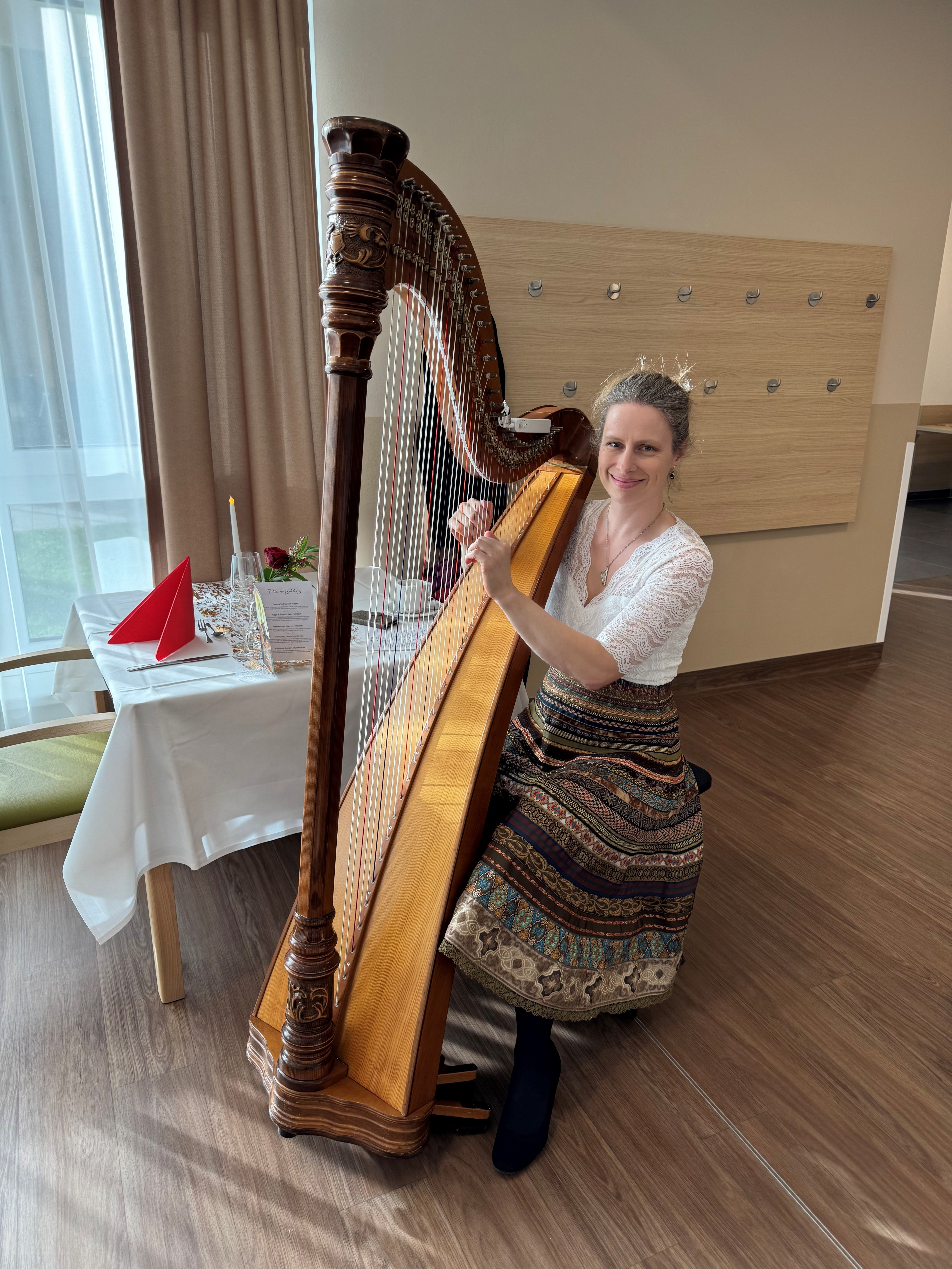 Anfang November fand im SeneCura Pflegezentrum Kalwang ein magisches Candle Light Dinner statt, bei dem keine kulinarischen Wünsche offenblieben. Die Bewohner:innen sowie ihre Angehörigen wurden mit einer Vielfalt an köstlichen Speisen verwöhnt. Zur Vorspeise wurde eine Frischkäseterrine im Karottenmantel, gefüllt mit Powidelmus auf buntem Blattsalat an Granatapfelvinaigrette und dazu Blätterteigstangerl serviert. Eine Rote Rübencremesuppe unter Krenobers und Apfelchips bildeten den wärmenden Suppengang. Anschließend genossen die Gäste eine gefüllte Hühnerbrust im Speckmantel auf Zucchini-Paprika-Gemüse an Süßkartoffelpüree mit Rosmarinjus. Zum süßen Abschluss zauberte die Küche ein Schokobrownie gebettet auf auf marinierten Orangenfilets an Spektulatius Parfait. Bei köstlichen Speisen und dem ein oder anderen Gläschen Wein wurde auf den kulinarischen Hochgenuss im Haus angestoßen. Musikalisch umrahmt wurde die Veranstaltung von Schenekar Bettina, die die Gäste mit harmonischen Klängen auf der Harfe begeisterte. Dankbar für den festlichen Abend genossen die Bewohner:innen das gemütliche Beisammensein mit ihren Angehörigen.