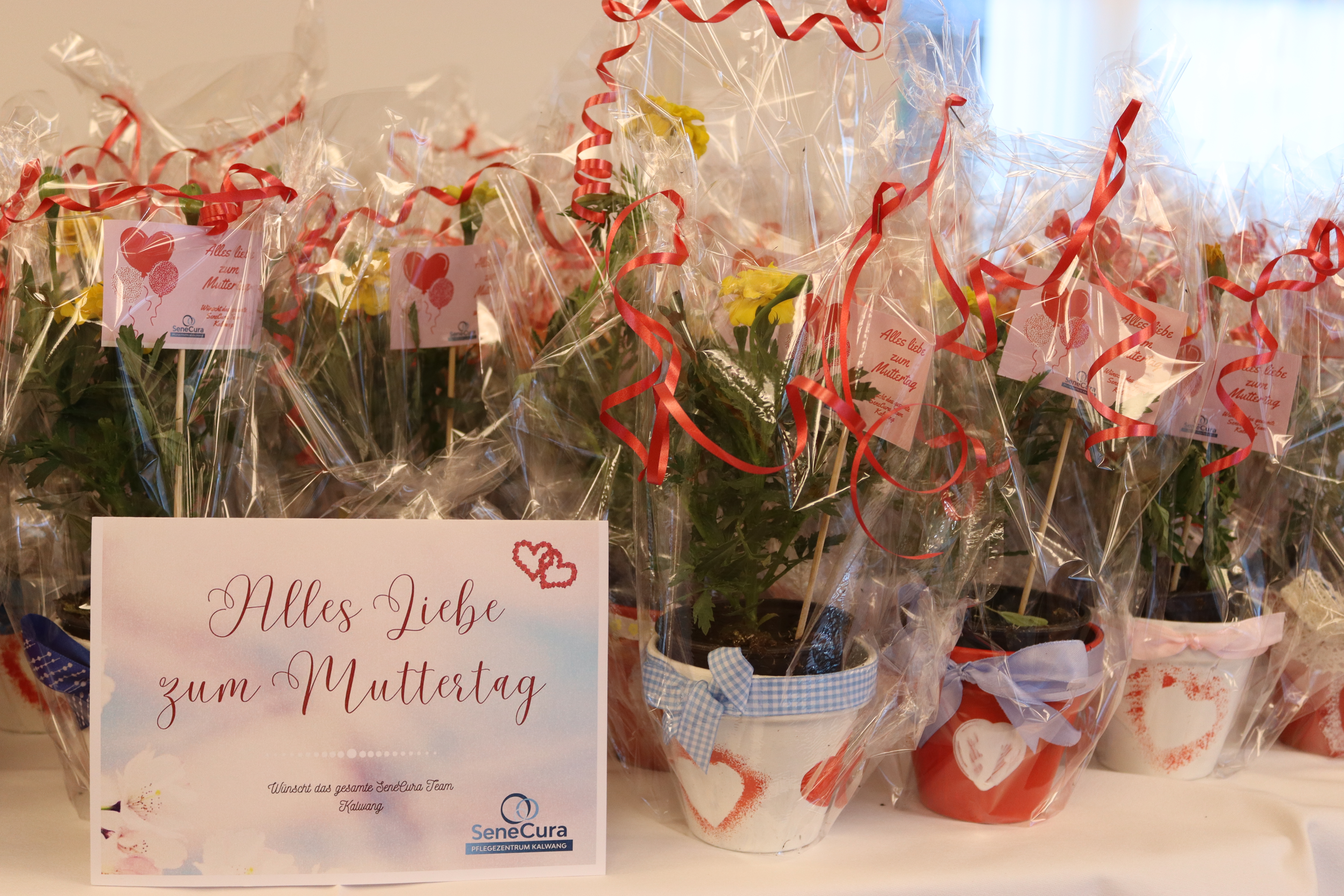 Die Senior:innen des SeneCura Sozialzentrums Kalwang feierten kürzlich gemeinsam mit dem SeneCura-Team den Ehrentag der Mütter. Für Strahlen in den Gesichtern der Festgesellschaft sorgte das stimmungsvolle Programm. Es gab zur Überraschung ein vielfältiges Frühstücksbuffet von Aufstrich-Wurst-Käse und Lachsplatten. „Ein großes Lob an die Küche für dieses tolle Frühstück.“, so Gudrun Richl, Hausleitung des SeneCura Kalwang. Als Geschenk wurde ein Blumenstock an jede Mutter von Seniorenanimation Nicole Antonitsch und Heimhelferin Kerstin Rahm Steiner übergeben. Die Freude unter den Damen war groß: „Ich finde es toll, dass wir den Tag zu Ehren der Mütter so groß feiern. Wir haben uns alle sehr über den Blumengruß und das köstliche Buffet gefreut“, schmunzelt eine Bewohnerin des SeneCura Sozialzentrums Kalwang.